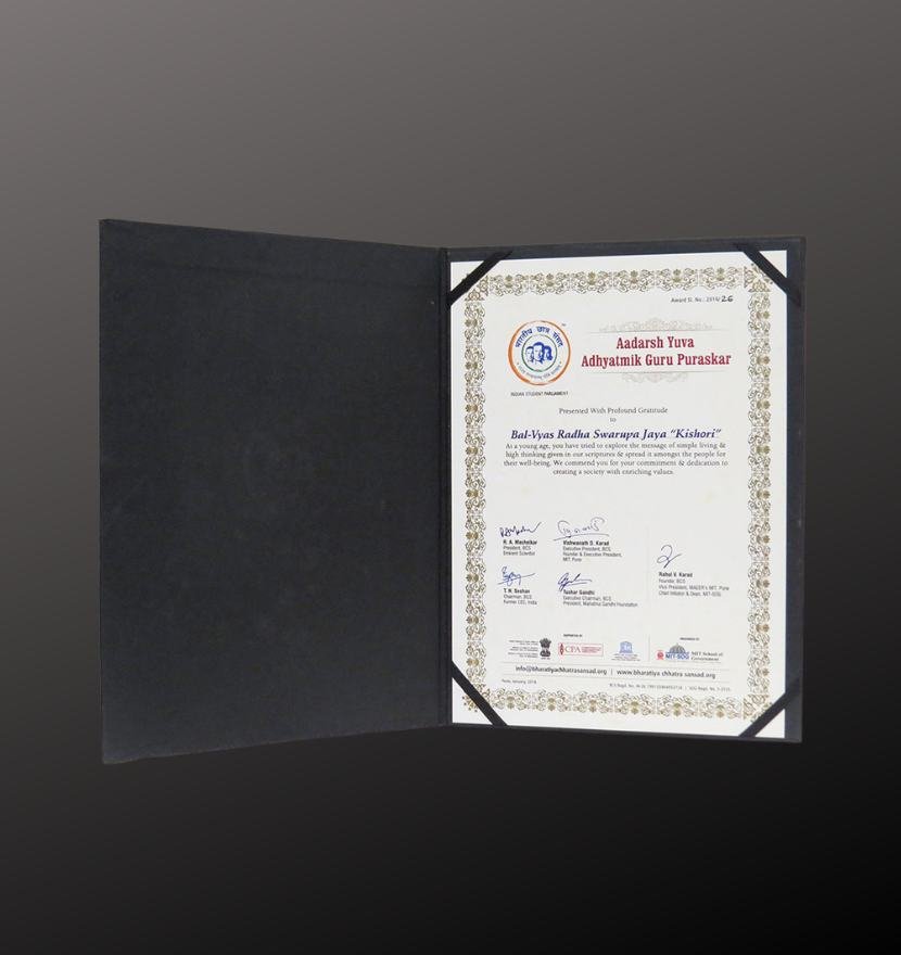 Over the years, Jaya Kishori’s unwavering dedication to spiritual upliftment and social service has earned her numerous accolades and national recognition. Among her proudest moments is being honored by the Hon’ble Prime Minister of India, Narendra Modi, acknowledging her impactful contribution to society and youth empowerment. Her awards and recognitions stand as a testament to the transformative influence of her words and the millions of lives she continues to inspire across the globe.